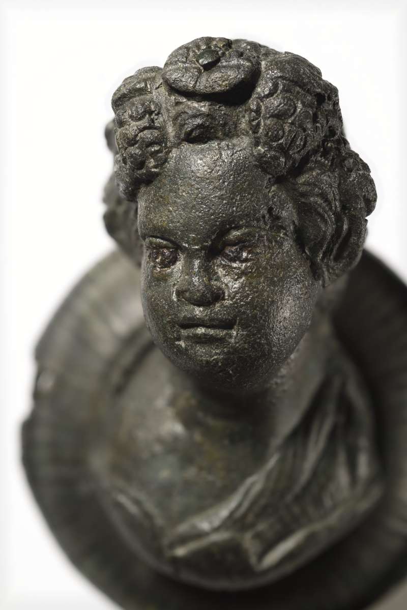 Aufgrund der bis zu 1m mächtigen Kolluvien, die die Fundstelle komplett abdeckten, war diese zuvor nicht bekannt. Interessierte Bürger erkannten anhand einer starken Fundstreuung in der Baustelle die Bedeutung der Anlage und informierten die Landesarchäologie. Die erste Auswertung der bei den nachfolgenden Grabungen geborgenen Kleinfunde ergab eine Nutzung der Villa vom 2. bis an das Ende des 4. Jhs. Unter den Funden, die bereits bei der Entdeckung aufgelesen wurden, gehörte auch ein Beschlag aus Bronze, eine sogenannte Büstenapplike. Zu erkennen ist die Darstellung eines Jungendlichen als Jahreszeitenpersonifikation. Anhand verschieden geschmückter Haare lassen sich bei dieser Fundgattung die vier Jahreszeiten unterscheiden. So ist der Winter im Kapuzenmantel dargestellt, der Frühling trägt einen Blüten- und der Sommer einen Ährenkranz. Bei der Applike aus Niederzissen erkennt man einen Weinlaubkranz mit Trauben - die Attribute des Herbstes. Besonders bemerkenswert sind die mit Eisen und nicht wie oftmals üblich mit Silber eingelegten Augen. Es ist davon auszugehen, dass jeweils vier Appliken zu einem Set gehörten und an Kästchen zur Verzierung angebracht waren. Die Verbreitung und vor allem die zahlreichen Parallelen aus Köln, deuten auf eine Produktion in Niedergermanien hin.